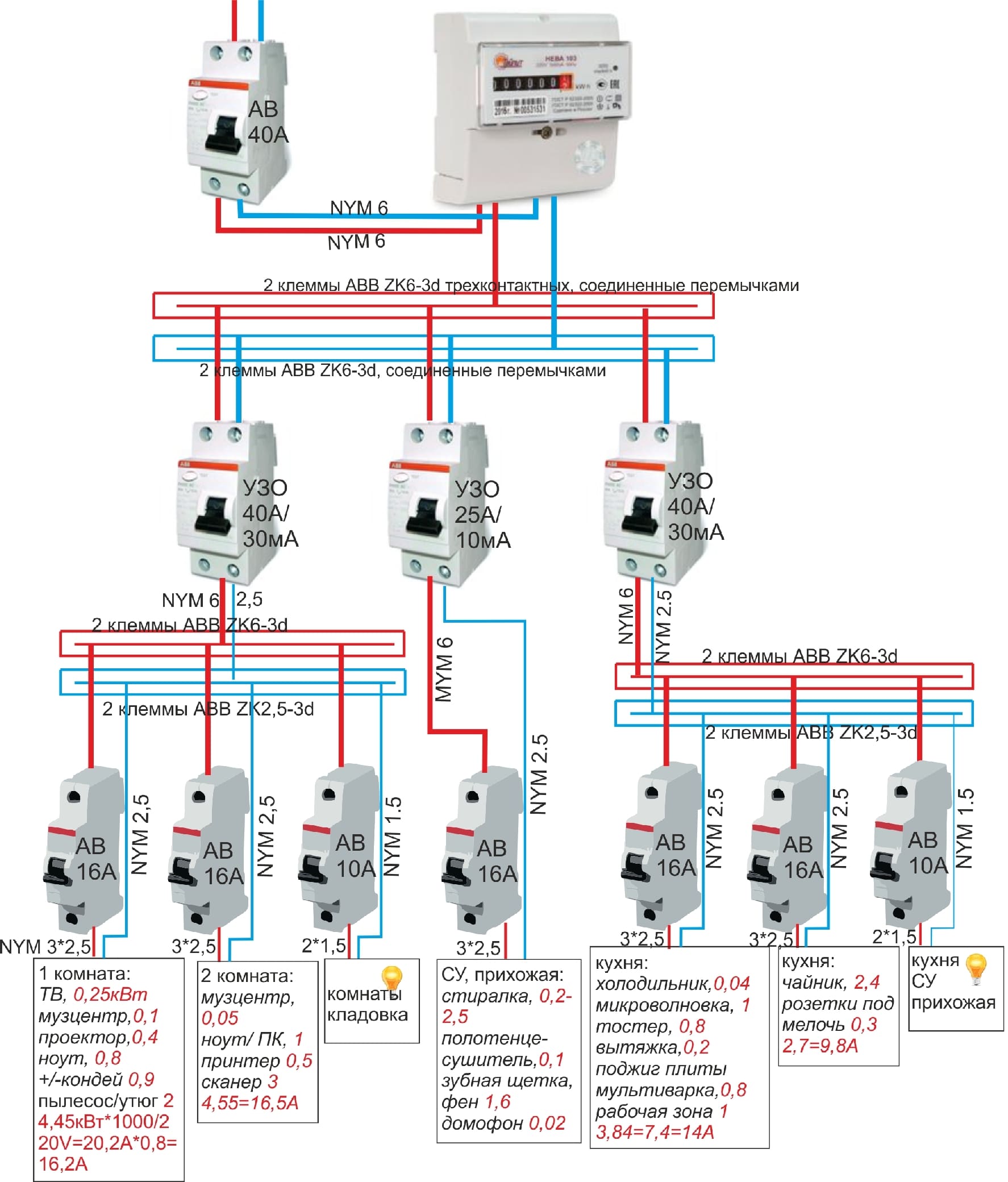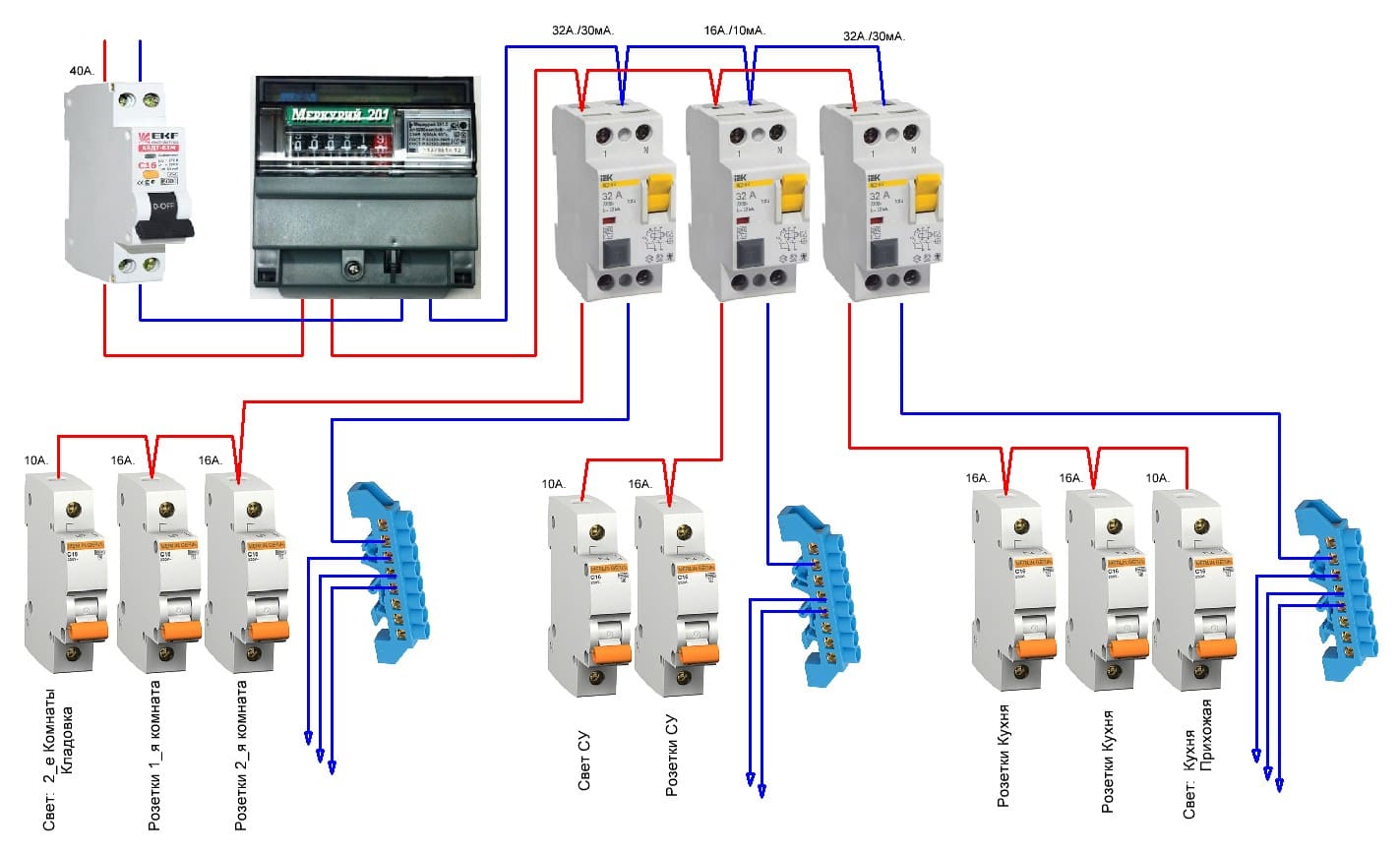 Вопросы по схеме электрощита для двухкомнатной квартиры