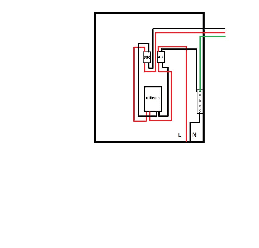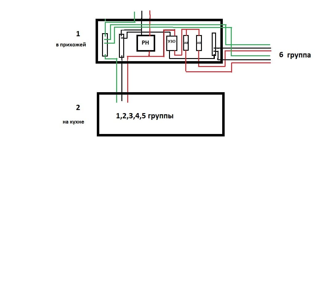 . Поэтому и пришла такая мысль : А если в этажном щитке оставить вводной АВ, счётчик и общее УЗО, затем в квартиру завести общий кабель 3х6, затем РН, от него кабель 3х4 на кухню и там в кух. гарнитуре поставить щиток с остальной защитой по кухне, а имеющиеся 2 линии ( на остальную часть квартиры ) вернуть с лестничной площадки в квартирный щиток и " повесить " на узо и автоматы. Другими словами огромный щиток будет разделён на две части ( на кухню свой щиток из 5 АВ и 3 УЗО, а на остальную часть квартиры будет в прихожей ) и не будет мозолить глаза в коридоре. Примерно так :На выложенном им фото прекрасно видно ... четыре провода по стояку.Кактус писал(а):Источник цитаты aleks221050, пытайте элетрика, но и сам ещё раз осмотрите свой ЩЭ, провод приходящий на вашу колодку "заземления" куда подключен?