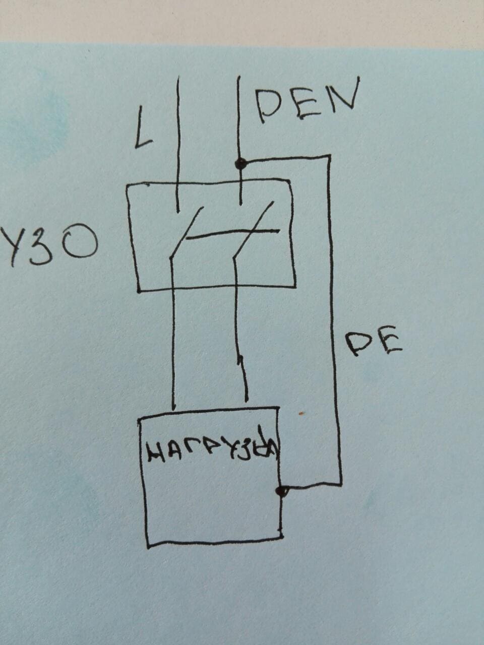 идет речь уже о TN-C-S.... В случае необходимости применения УЗО для защиты отдельных электроприемников, получающих питание от системы TN-C, защитный РЕ-проводник электроприемника должен быть подключен к PEN-проводнику цепи, питающей электроприемник, до защитно-коммутационного аппарата.
