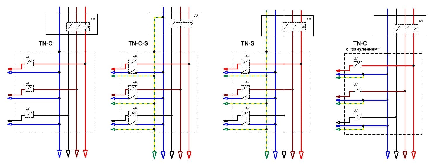 т.е. речь идет только о четырех (а в случае "однофазки" - двух) проводах.система TN-С - система TN, в которой нулевой защитный и нулевой рабочий проводники совмещены в одном проводнике на всем ее протяжении