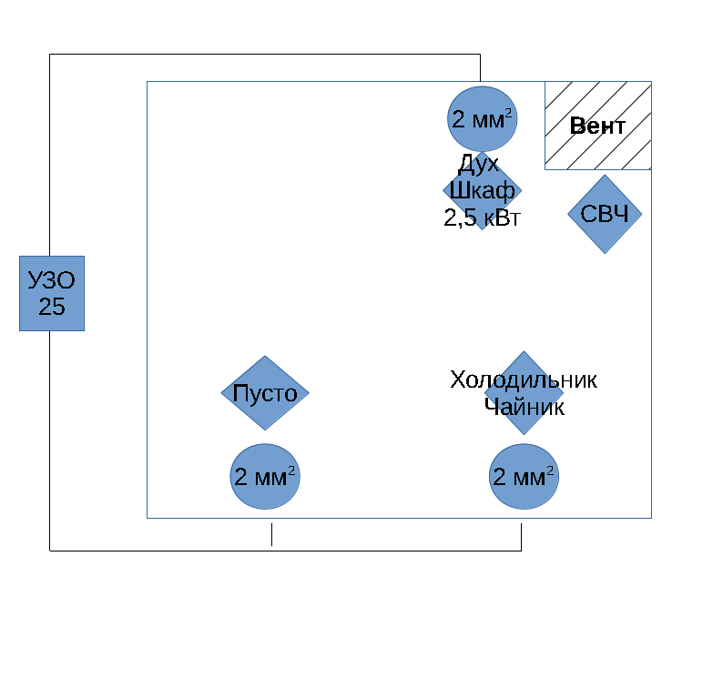 Я не написал - линия-то одна с УЗО на 25А. Померил сечение проводов, оказывается везде 2 мм (заниженное), в том числе у розетки духового шкафа (я то думал там вообще 1,5). Поскольку шкаф 2,5 кВт и пользоваться им придётся не часто, то наверное тянуть надо туда. Расстояние с изгибами 1,5м, тогда может просто кабель у СВЧ поменять на 1,5 м 0,75 (1,00) и всё?