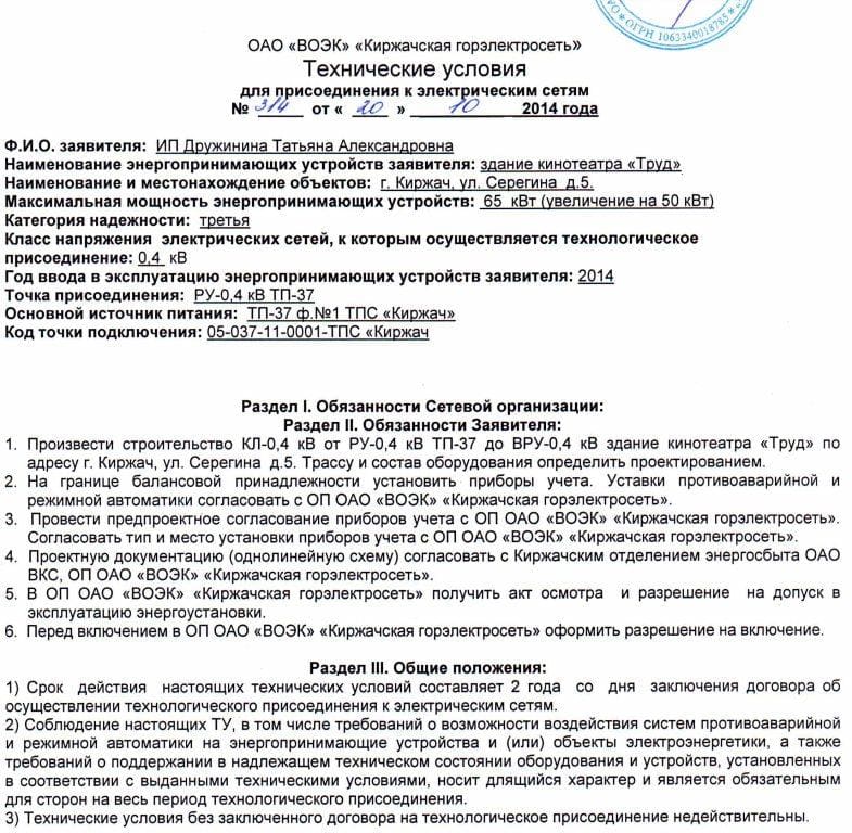 Что прописано в ТЗ и что прописано в ТУ , какая категория электроснабжения.