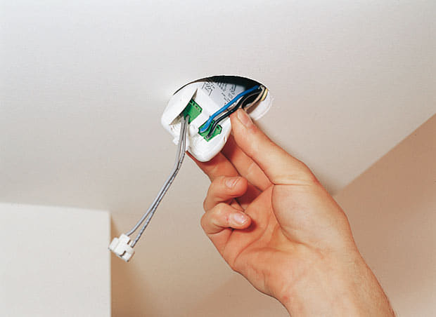 В ванной комнате установлен подвесной потолок и пять точечных источников света. Делал наемный рабочий, лет 10 назад. Подключение ламп, как понял, осуществлено через какой-то то ли блок питания(?), то ли стабилизатор. Белая коробка длиной в ладонь. Монтаж осуществлен клеммными колодками. Проблемная лампа, если не ошибаюсь, подключена последней в цепи.