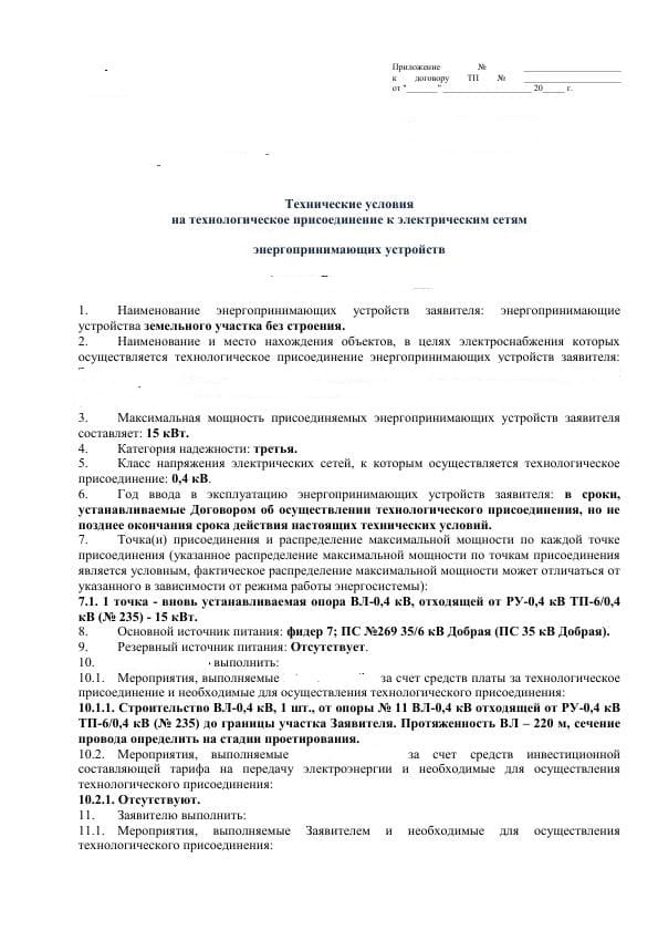 2. Так же на основании пункта 11.2 ТУ вы сами или проектная организация должны были выполнить внутреннего электроснабжения.