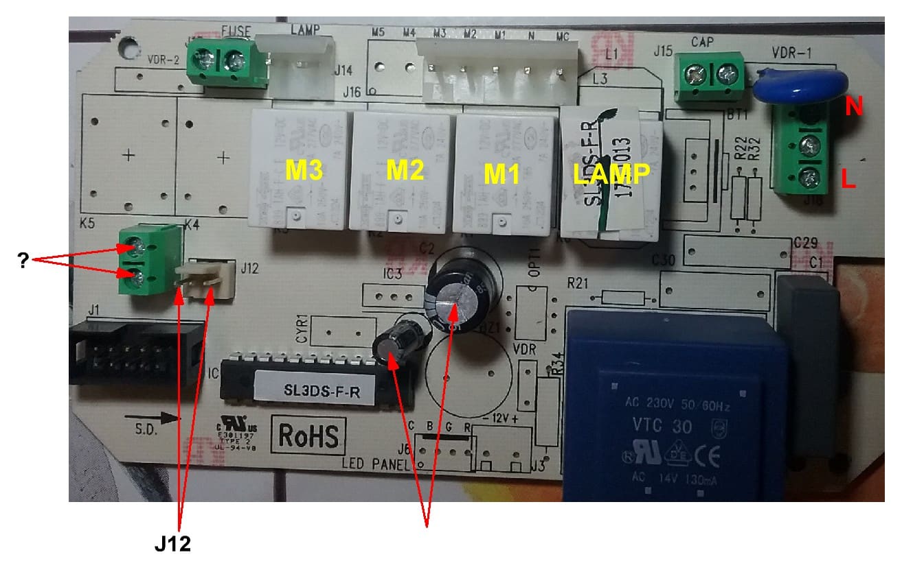 Я правильно Вас понял, что это типа включения "СЕТЬ"?j12-подключается фишка выключения и включения вытяжки .Вытяжку задвинул и она автоматически выключилась.Выдвинул - включилась.
