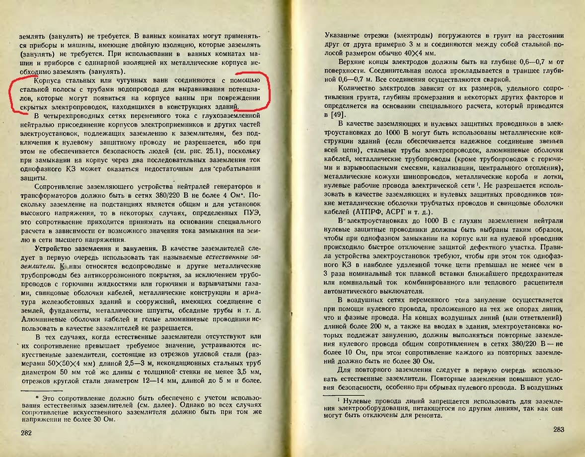 Примечание. Водопроводная вода нормального качества по значению объемного электрического сопротивления (проводимости) относится к полупроводящим веществам и с точки зрения возможности поражения электрическим током не рассматривается как сторонняя проводящая часть.