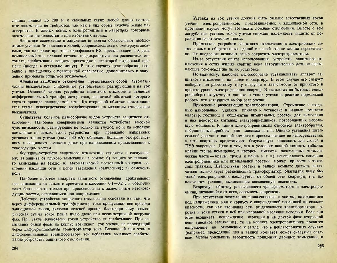 8. В зданиях, где водоснабжение осуществляется ответвлениями от внешней распределительной сети (магистрали), что характерно для большинства индивидуальных жилых домов, последнюю следует рассматривать как локальную землю. При повреждениях во внешних питающих электросетях, выполненных в соответствии с требованиями ПУЭ 7-го изд., на защитном РЕ (РЕN) проводнике установки относительно локальной земли возможно появление напряжения до 50 В, а при повреждении (обрыве) РЕN проводника питающей линии – до значений, близких к фазному напряжению.