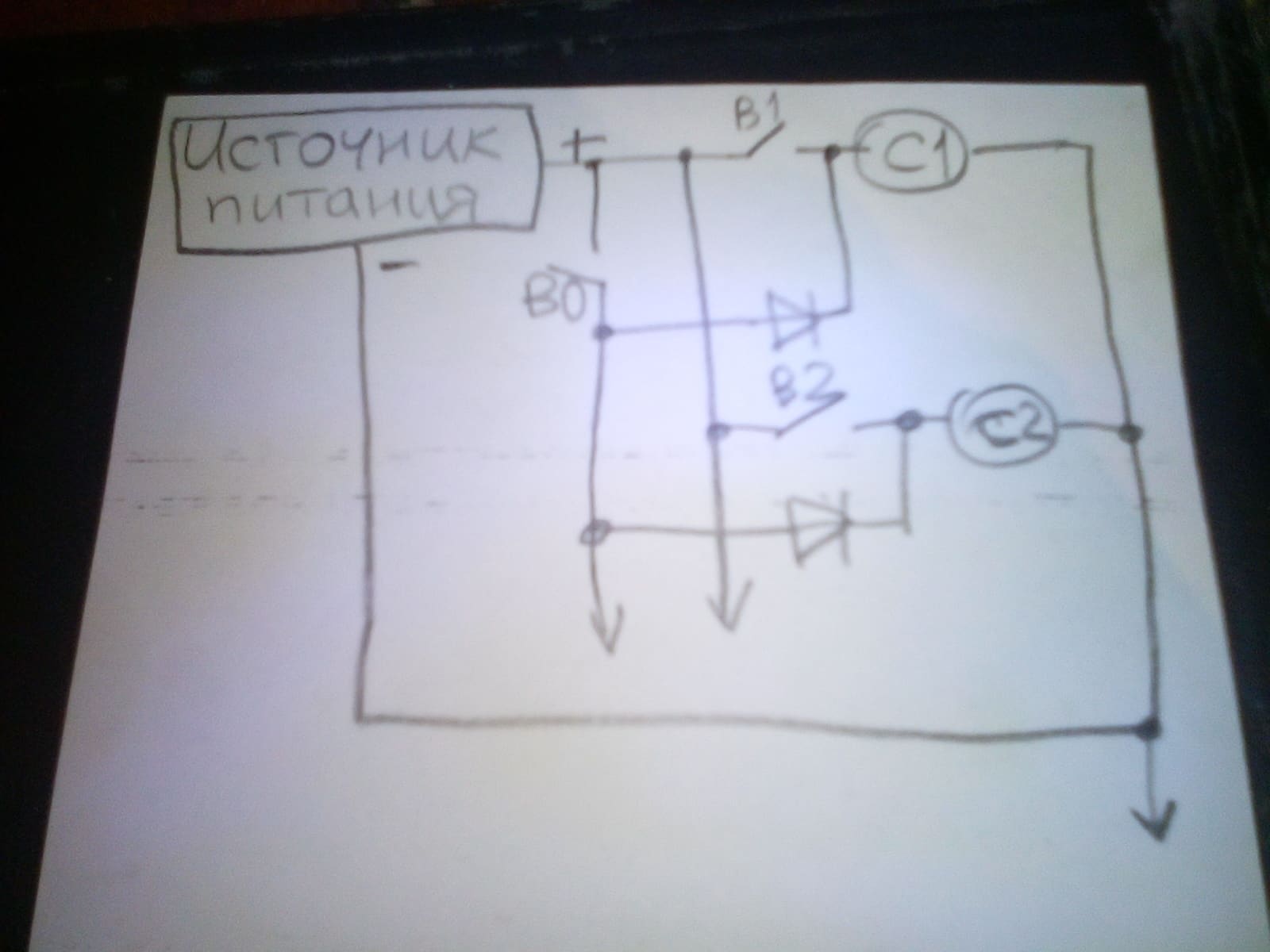 elalex писал(а):Источник цитаты scropin, показано для 2 светодиодов, В1 и В2 - их индивидуальные выключатели. В0 - общий выключатель всех.