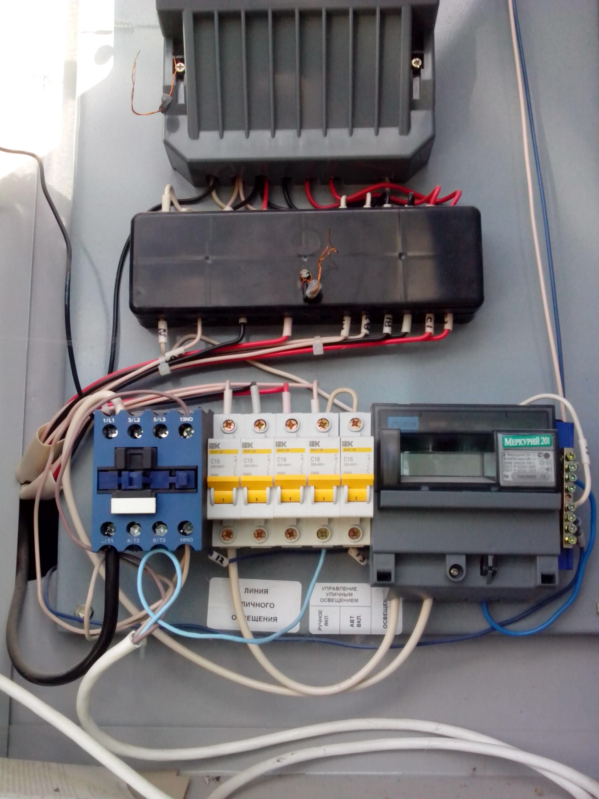 добрый вечер! у нас в снт уличное освещение питается от ЩУ в КТП. на данный момент включается в ручную с кнопочного поста на внешней стороне КТП. в ЩУ схема вроде простая: фаза на однополюсный автомат- счетчик-далее на контактор -далее от него с силовых
