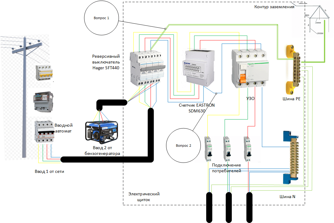 Здравствуйте, уважаемые электрики!Помогите, пожалуйста, разобраться с двумя вопросами по подключению дачного дома к сети электроснабжения.Описание подключения в приложенном файле.Вопросы