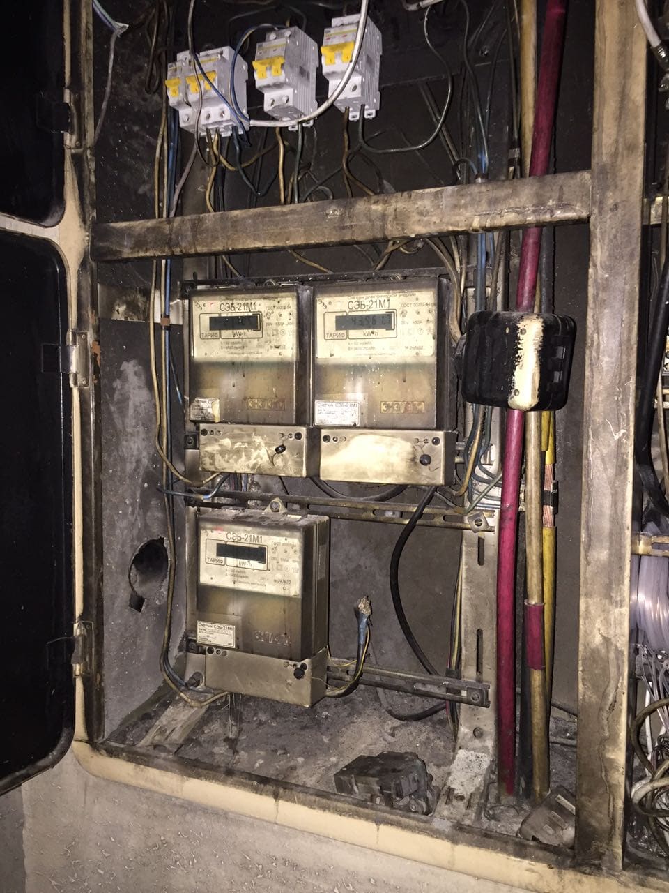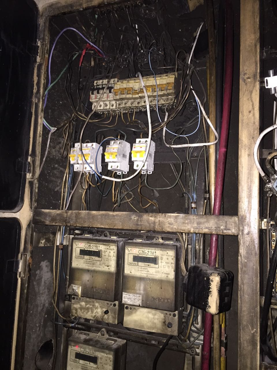 МОЙ ВОПРОС к Вам, мужчины, вот в чём: щиток в закопченном состоянии, а жители напуганы. У нас и до пожара постоянно на этаже мигал свет в лампах и они перегорали, а потом вдруг снова начинали работать. Сейчас стоят временные лампы в пластиковых коробах (мигают периодически), висят провода по стенам и в коридоре к запасному выходу нам (спустя 1,5 месяца) к торчащим проводам подсоединили две лампочки Ильича. Живем как в клубе неформальной молодежи! В одной из квартир обесточена после пожара разетка в ванной, один раз приезжала аварийка, тк ночью выбивало пробки на этаже и в одной из квартир.