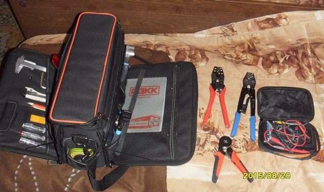 У меня инструмент условно разделен на слесарный и электромонтажный. Слесарный инструмент уложен в стальной раздвигающийся ящик. Что в него входит: молотки разного веса, ножовка по металлу, напильники различного профиля,зубила, запасные полотна к ножовке, клещи для опрессовки, пассатижи, кусачки. Электромонтажный инструмент находится в компактном кейсе, очень функциональный и удобный. В него входят: изолирующий инструмент (отвертки, пассатижи, кусачки, все испытано) клещи для опрессовки наконечников трубчатых, клещи для опрессовки наконечников с изолированной манжетой (кольцо, штырь, гильзы, наконечник-гильзы), клещи для опрессовки наконечников-гильз, клещи для снятия изоляции, круглогубцы, утконосы, набор рожковых и имбусовых ключей (неизолированных), набор всевозможных наконечников (до 10 мм кв и гильз до 6 мм кв), набор метизов (до М5); указатель напряжения, штангенциркуль, линейка, карандаши, ручки; изолента всех цветов, набор ключей от замков щитов, навесной замок для запирания дверей; запасная батарейка 9В для токоизмерительных клещей; клей моментальный.
