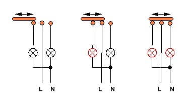Нужно запитать две цепи таким образом - чтобы во втором положении замыкалась только одна, а во втором обе. Аналогично включению габаритов и ближнего света в автомобиле. Т.е. - во втором положении горят только габариты, в третьем габариты и головной свет.