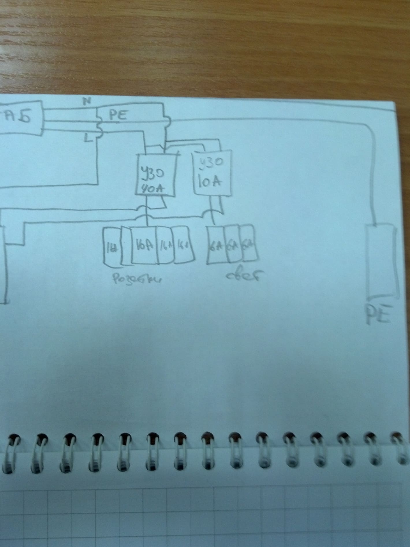 Эта схема соответствует 1 фото. УЗО тоже не работает.