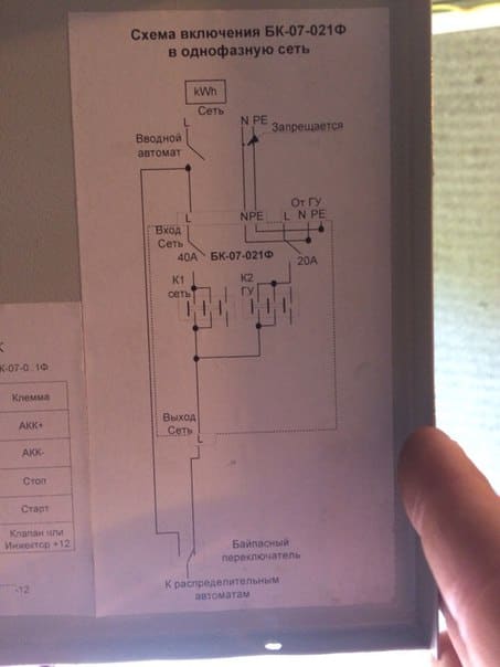 Схемы нет, и интернет молчит. Понять бы логику работы ящика, какой элемент дает сигнал на реле времени (финдер), какой элемент на генераторе отвечает за завод генератора и передает сигнал на ящик АВР?