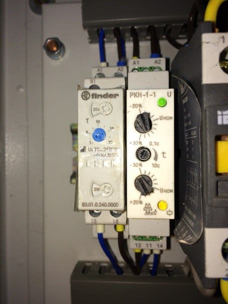 Надо выяснить откуда приходит провод на клемму В1, на реле времени.