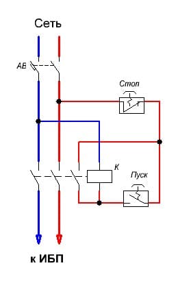 Подчеркнутого (мной) хватило бы в первом посту темы ... вот Вам схема, без каких то там, хитрых бистабильных реле ...esser писал(а):Источник цитатыВы все верно описали. Это желание обусловлено возможной поломкой аккумулятора/ИБП во время отсутствия основной сети - протек аккумулятор, какая-либо перегрузка в остальной нагрузке, протечка воды по колено, что заливает всю автоматику. Естественно хотелось бы иметь все это хозяйство электромеханиески выключенным. Даже после появления основной сети.