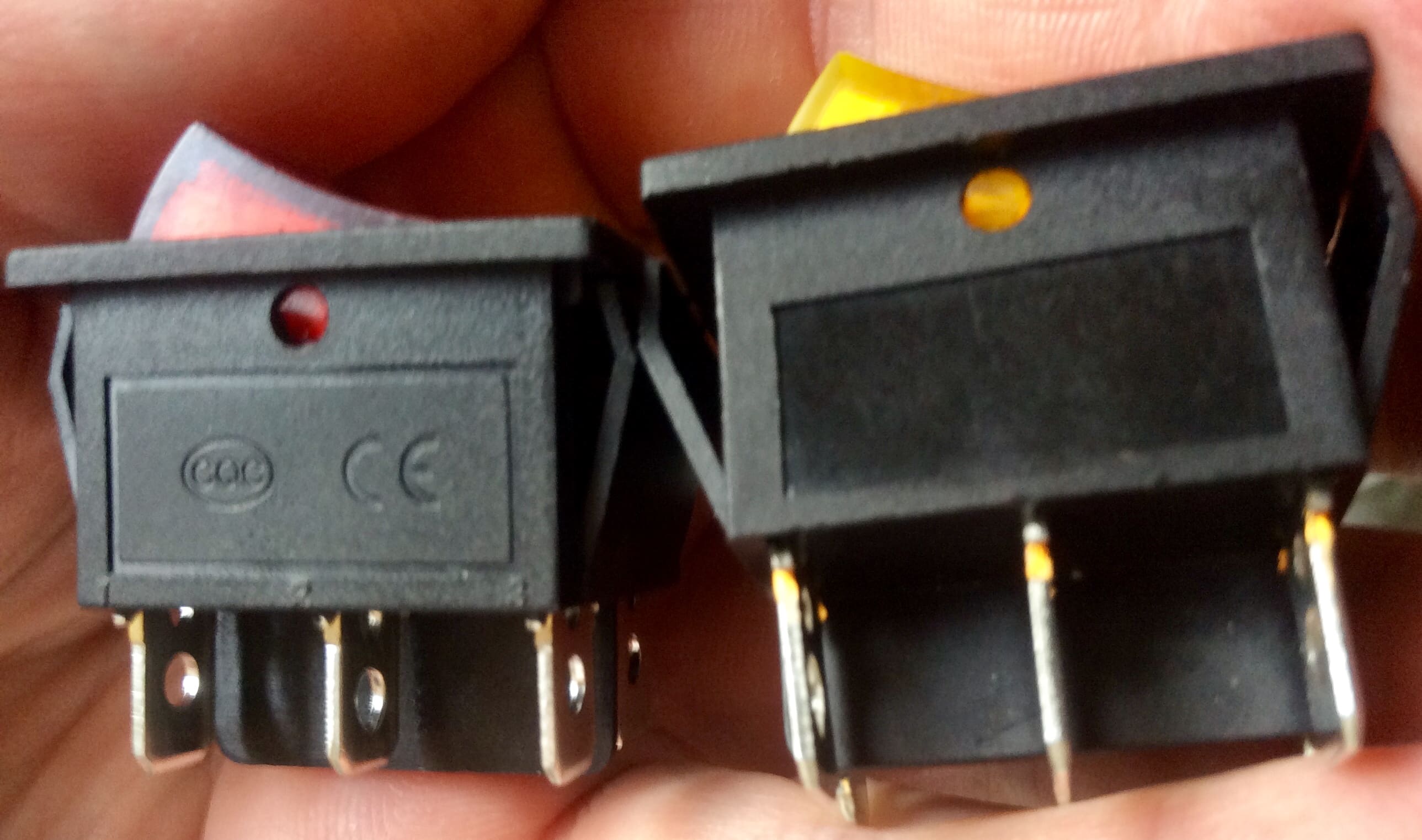 ... Выше была картинка потрохов типичного представителя этого семейства, посмотрите, ничего сложно там нет- клавиша в положении 0-замкнуты средние и верхние пары 1-2, в положении І- средние и нижние 2-3. Лампа подсвета тоже видна- в самой клавише-качалке...(с)