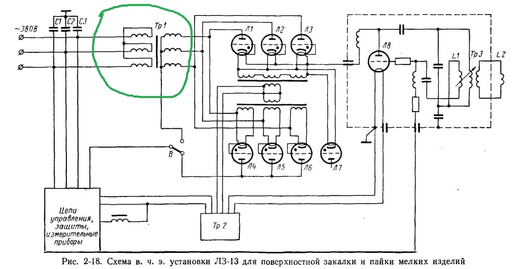 Как проверить омическое сопротивление обмоток трансформатора? Трансформатор от высокочастотной электротермической установки 380/8000. Примерная схема: