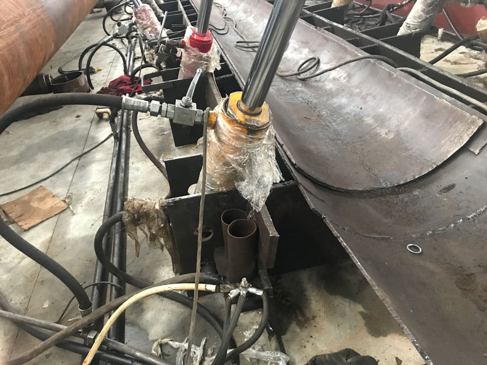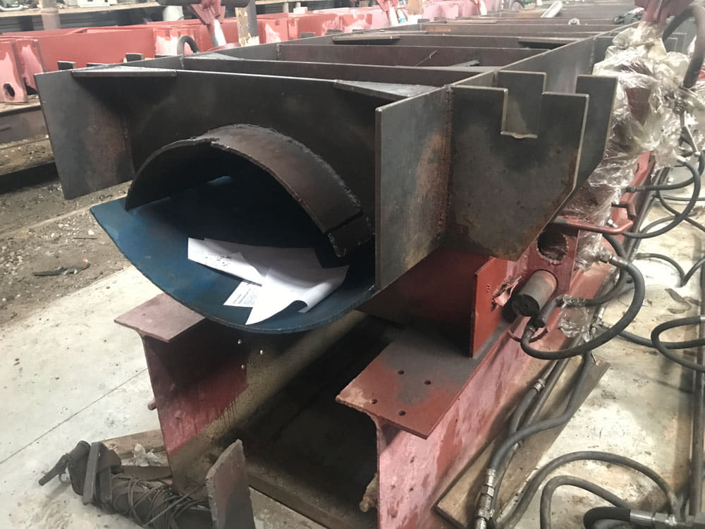 два массивных(на фото). Выполнены из листа 10-18мм. Вес первого 4. Второго 7 тонн. И два облегченных из профильных труб.
