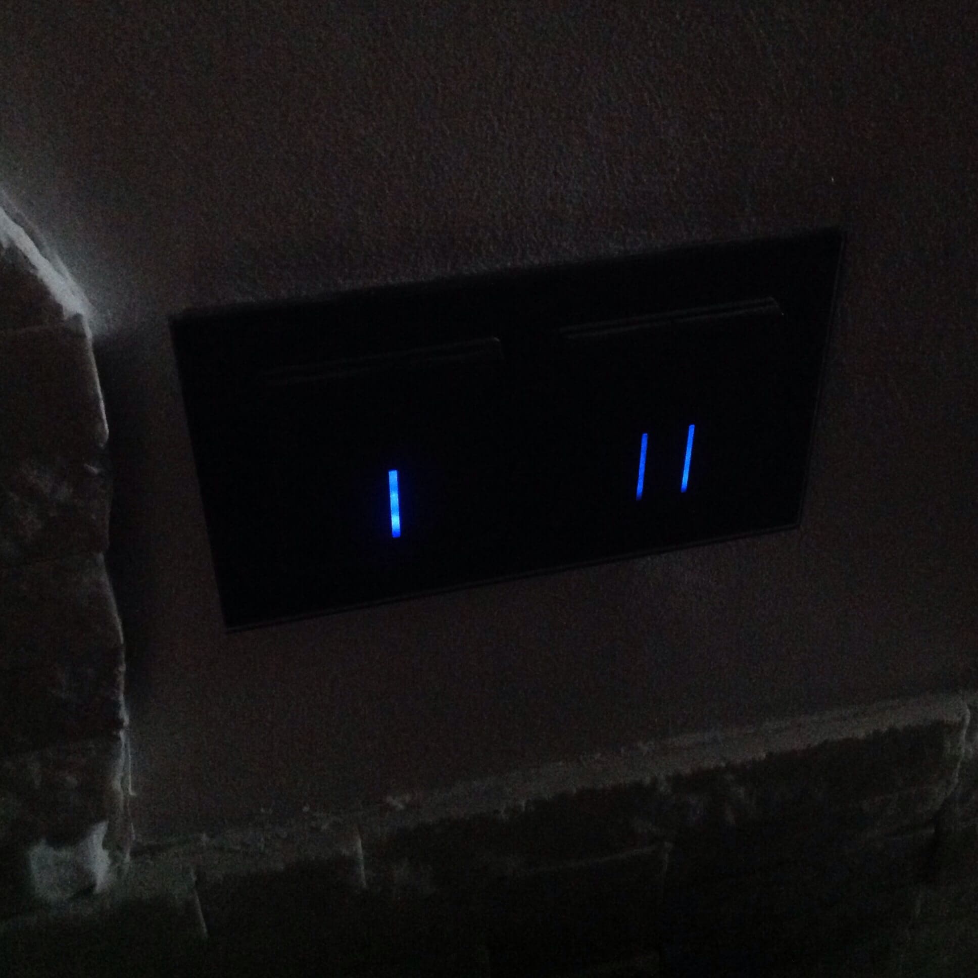 Три выключателя идут на комнату. Один для люстры, вторая клавиша для светодиодных лент , третья клавиша для светильника в стене.