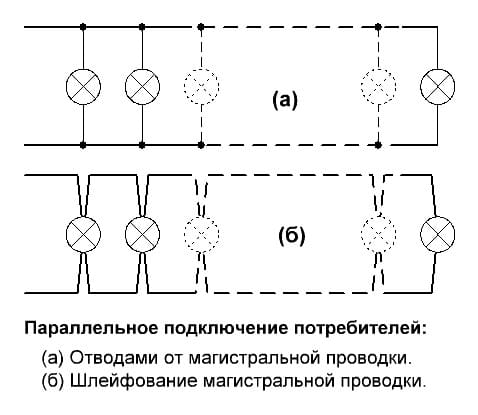Если все же шлейф, то при перегорании одной лампы остальные будут светить.