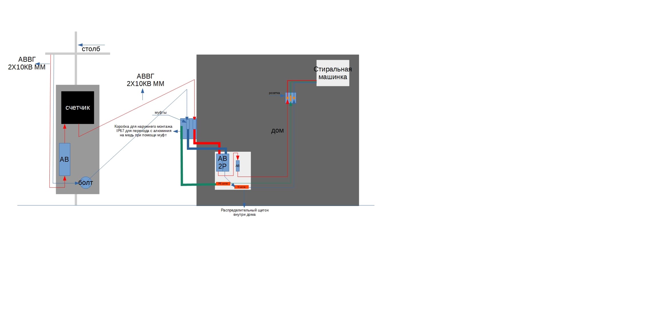 1.АВВГ-П 2х10 от вводного щитка в дом идёт воздушной линией?