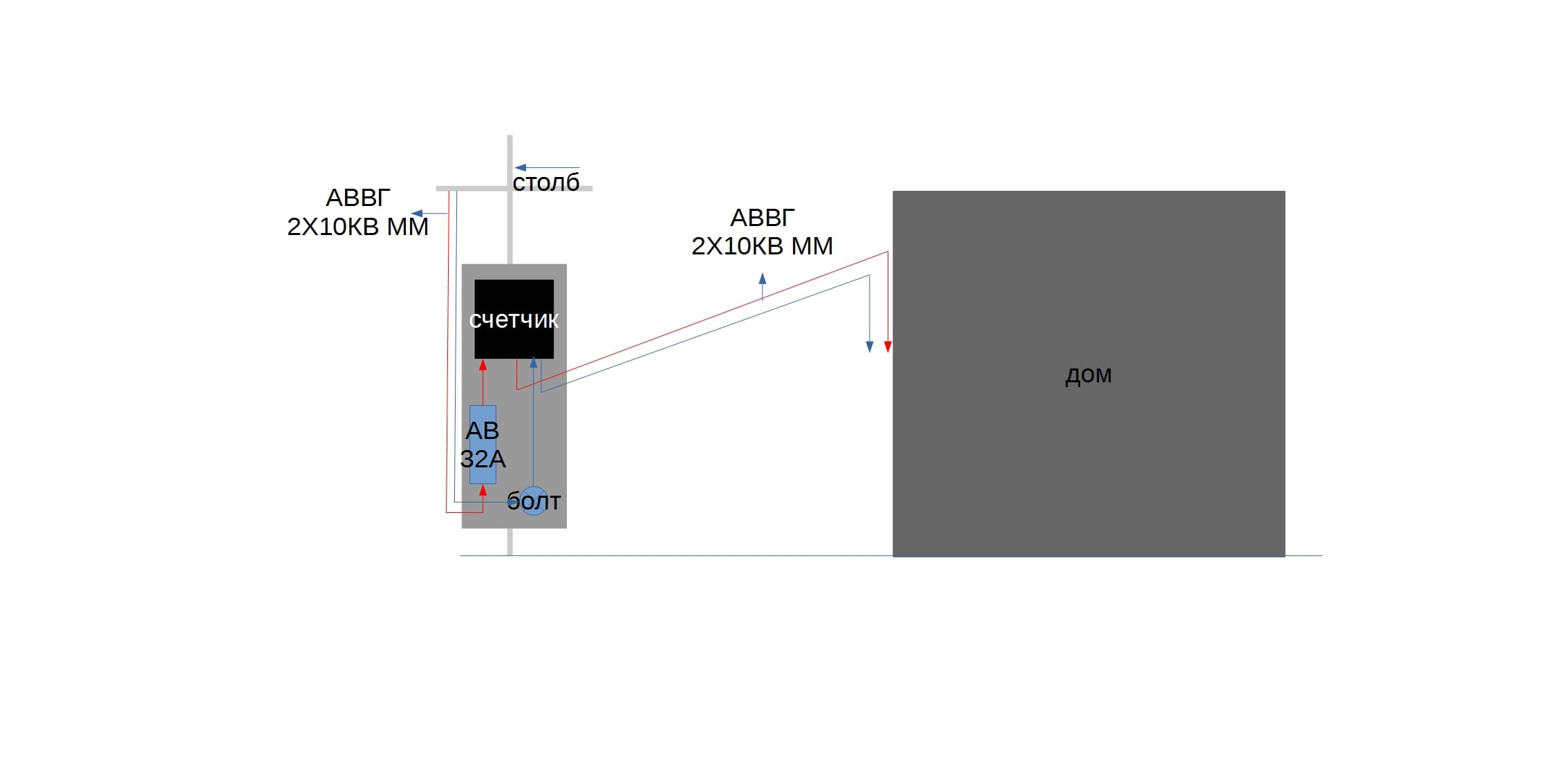 вот рисунок того, в каком состоянии сейчас там проводка подведена к дому