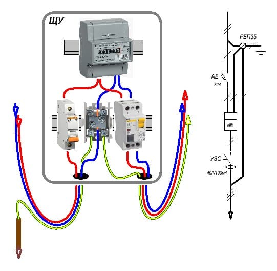Решил собрать вот так ... от опоры СИП, внутри разводка 6 мм.кв., заземляющий 10 мм.кв. арматурина-земля непосредственно под ЩУ, ЩУ повешу на стену дома.
