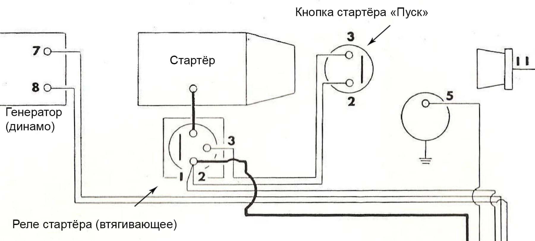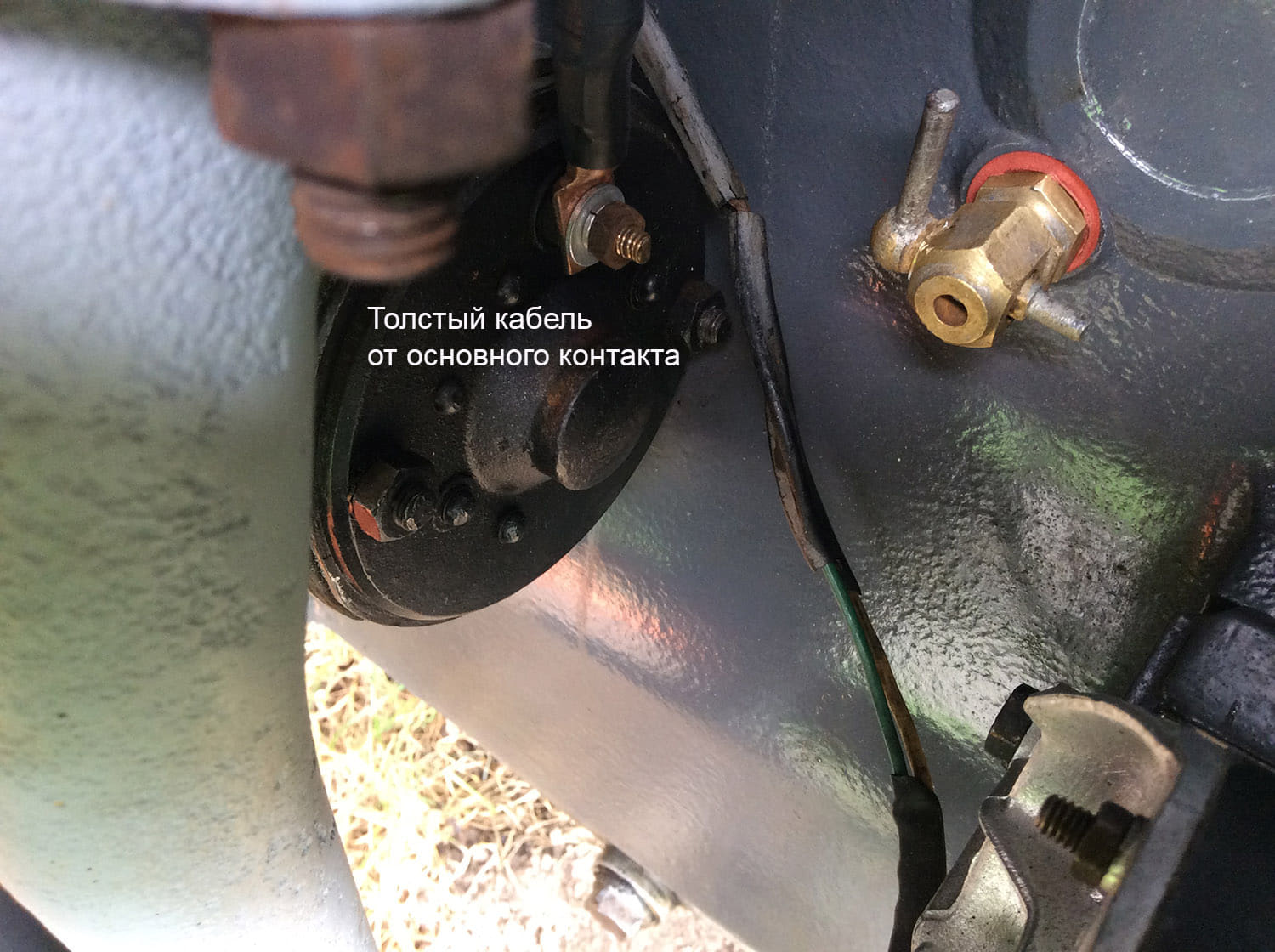 Сэр, Вас маленько запутали с этими фото ... толстый провод, который мы видим, идет не от АКБ, а от пускового реле, т.е. подает "плюс" апосля пятачка, на обмотку стартера.ПАВ писал(а):Источник цитаты Вот тот толстый(на рисунке) провод от АКБ к контактору и от него к стартеру и есть силовые- ток там приличный, много больше остальных. Соответственно, и все клеммы есть силовые. Смотрите на их диаметр. И тут совершенно непонятно применение после контактора такого тщедушного зеленого.