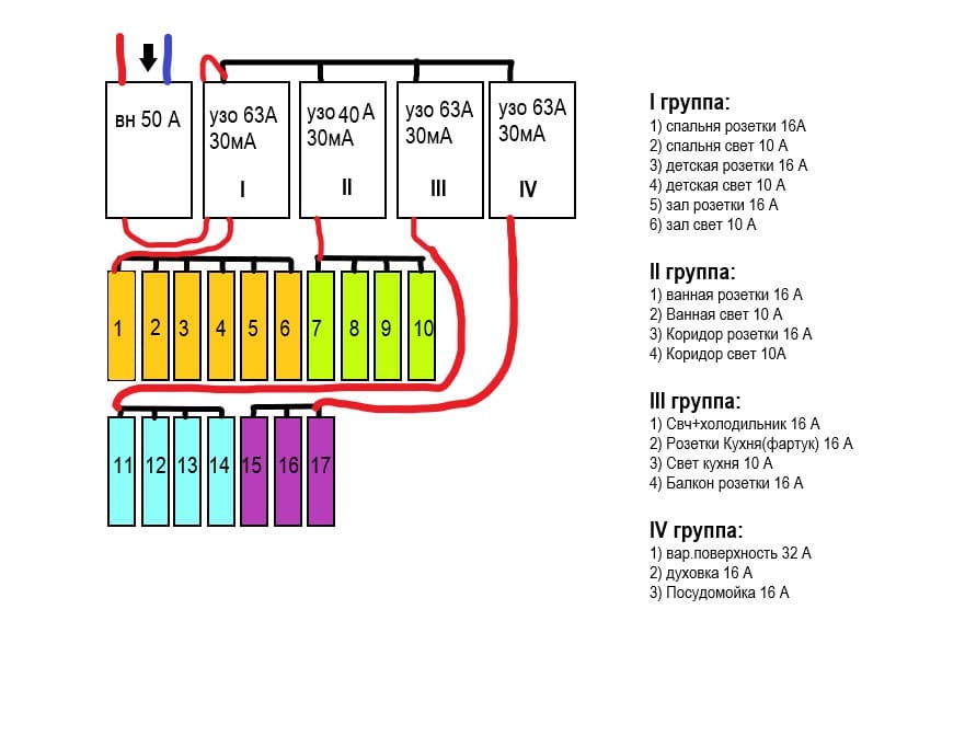 Подскажите, что нужно поменять в данной схеме для квартирного щитка.