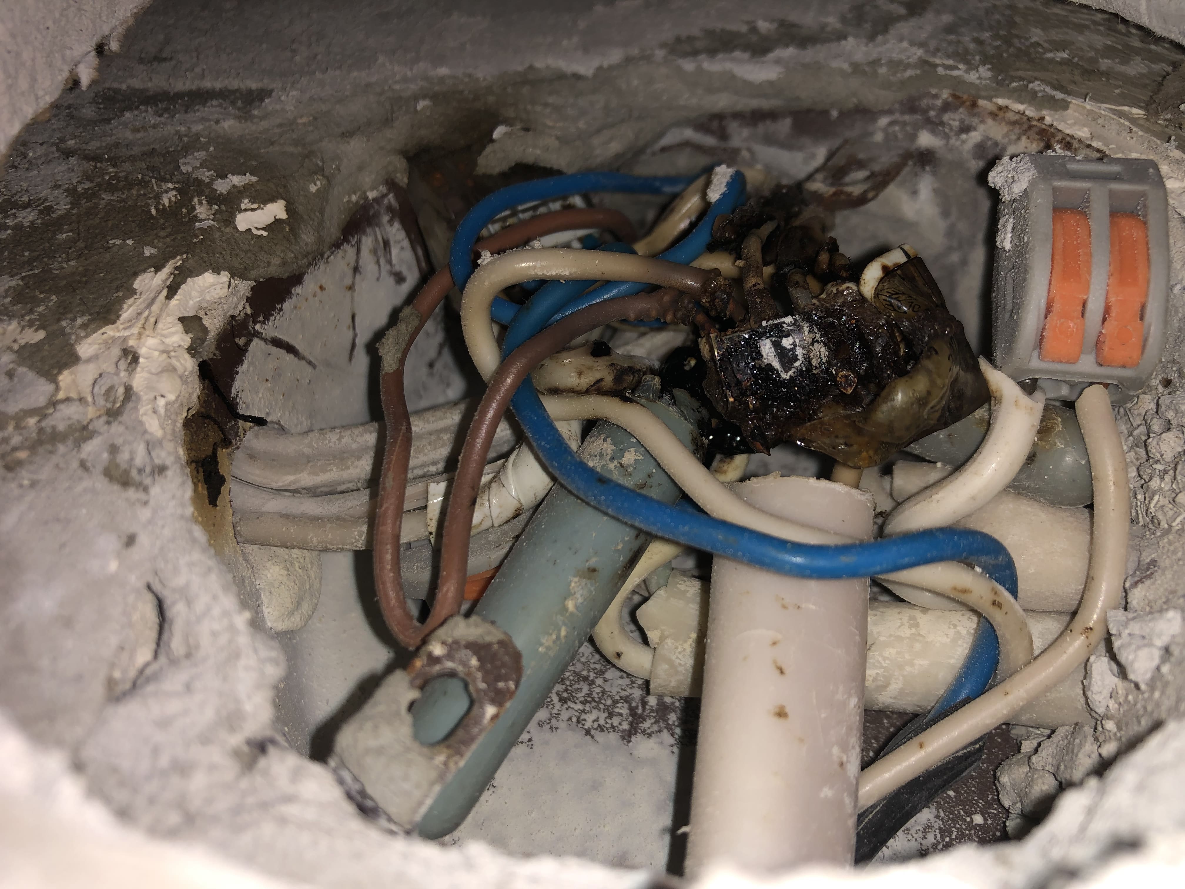 Предполагаю что соединены алюминиевые и медные провода, знаю что так не делается.