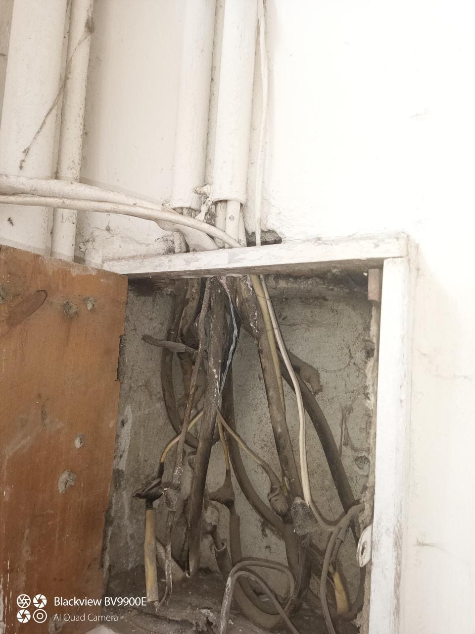 Подскажите как надо делать проводку в подъезде жилого дома 50-х годов выпуска. Стены в подъезде кирпичные. Счётчики стоят в квартире. Но по факту все выглядит очень печально. Хочу через ЖКХ восстановить справедливость и сделать по уму. Пока из работ убрали пробки и поставили два автомата(на лампочку освещения подъезда) и повесили замок на щиток между этажами. Щиток деревянный (третье фото) внутри скрутки из проводов. Адрес ключа от замка неизвестен. На остальных фото внешний вид щитков на этажах. Этажа два. Один щиток закрыт железом в размер под винты, другой обрезком ПВХ