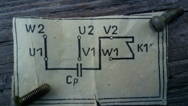 Попробовал включить в схему конденсатор на 40мф, как на схеме вложенную с клеммную коробку (см.в прикрепленном файле), т.е. подсоединил концы к U1 и V2, но никакого эффекта это не принесло.