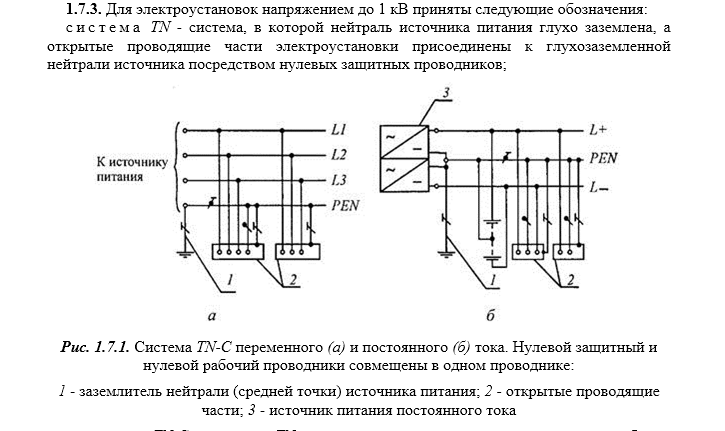 )elalex писал(а):Источник цитаты Посмотрите на картинке Рис. 1.7.2, какие провода идут к потребителю при TN-C. Раньше удалось загрузить ее на форум, теперь не получилось. Расширение .odg