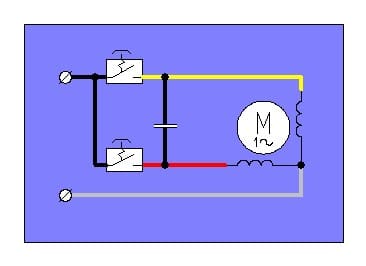 Тогда пробуйте, считая, что белый- общий, белый+красный- рабочая обм. - в сеть, белый+желтый- пускосдвигающая обм.- через конденсатор в ту же сеть. А вот постоянно она должна быть включена, или только для пуска- вопрос открыт- нет информации, не исключено- постоянно, примерно так http://www.skrutka.ru/kr/ad_220v/6.jpg