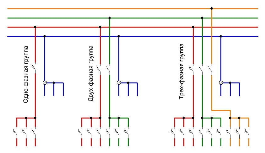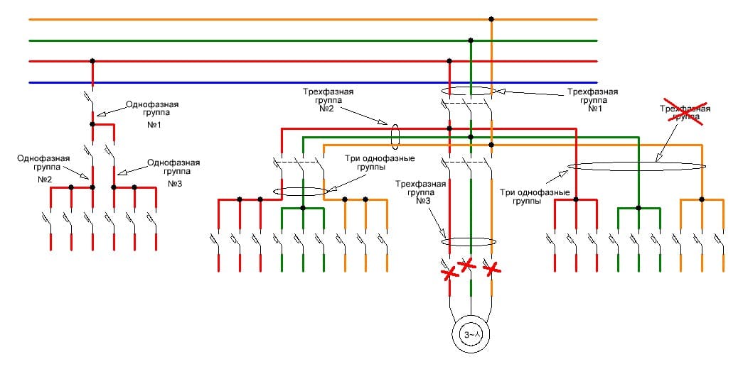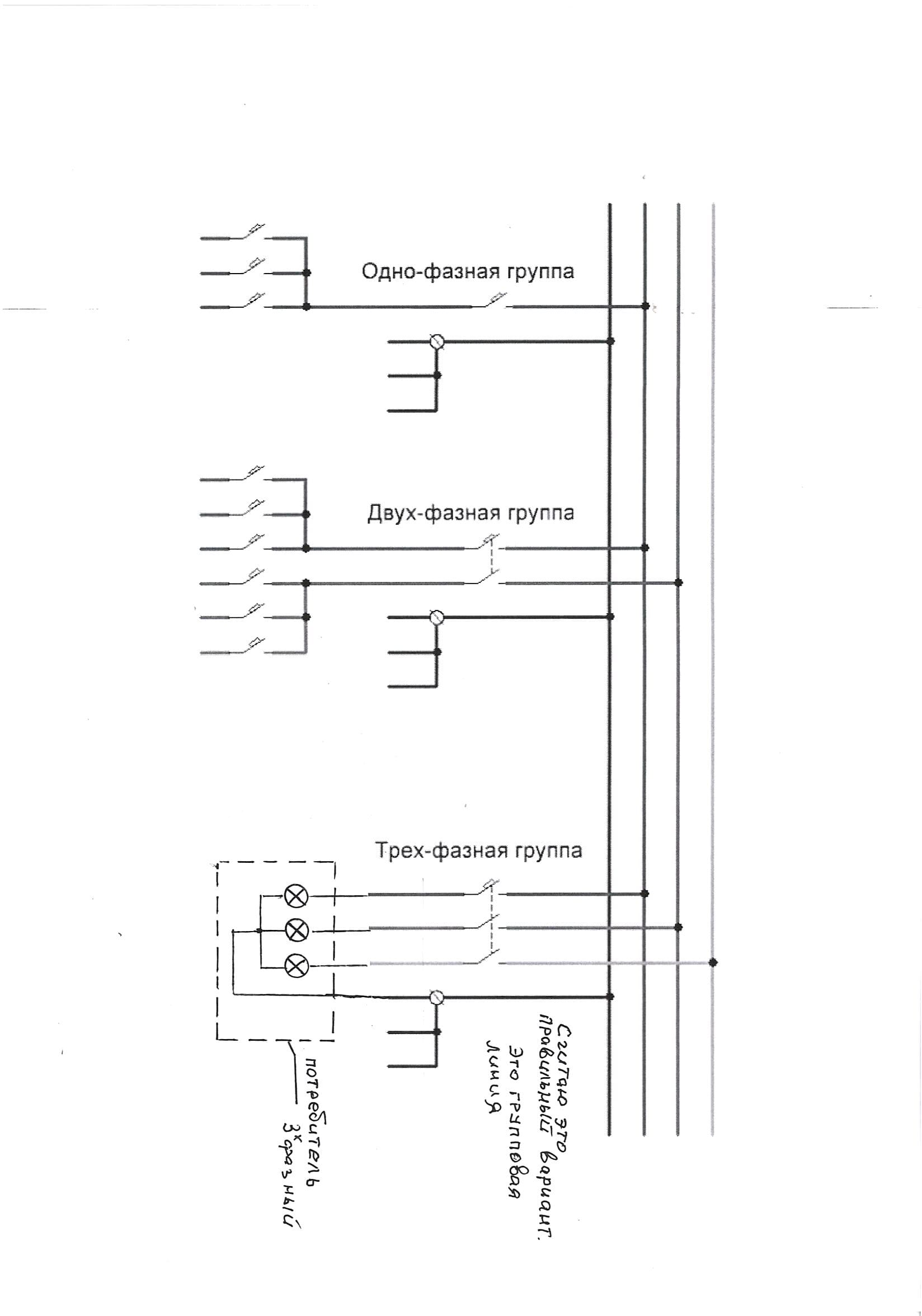 Самое интересное ... эти же провода, одновременно,могут принадлежать и группам с другим названием, т.е. они могут называться и трехфазной группой, и тремя однофазными группами.