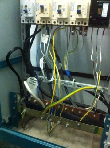 Уважаемый Tupos, в продолжение моего вопроса и темы про ввод РУ-0,4 кВ и PEN проводник приходящую на изолированную шину этого РУ. Прошу прокомментировать еще фото - это распредшкаф, который запитан от РУ-0,4 кВ, фото которого на предыдущей странице. Здесь мы видим разделение PEN проводника на PE и N. Но четвертая жила питающего кабеля (см. муфту черного кабеля) приходит на изолированную шину, а не на PE. Также видно перемычку - белый гибкий в полукольцо кабель. Так вот опять же согласно ПУЭ четвертая жила вводного кабеля должна присодиняться к PE шине этого распредшкафа, а не на N - изолированную + возможно повторное заземление, но не о нем речь. Подскажите корректность/не корректность такого расщепление PEN проводника на вводе в ГРЩ здания. Спасибо!