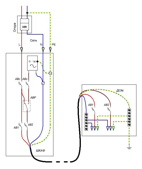 Он же выше писал, что шкаф находится рядом с опорой ... если у опоры, сетевая фаза (любая) окажется на земле, возникнет зона растекания (метров 25-30 в диаметре), т.е. шкаф и тем более корпус заземленного на месте БГ, окажется "токсичным" для организмов ... "шаговое напряжение" так сказать.ПАВ писал(а):Источник цитаты А я бы заземлил БГ на месте установки. Если случится утечка, все бывает, а вы взялись рукой за корпус БГ, слишком далеко надо бежать этому току к ближайшему заземлителю.