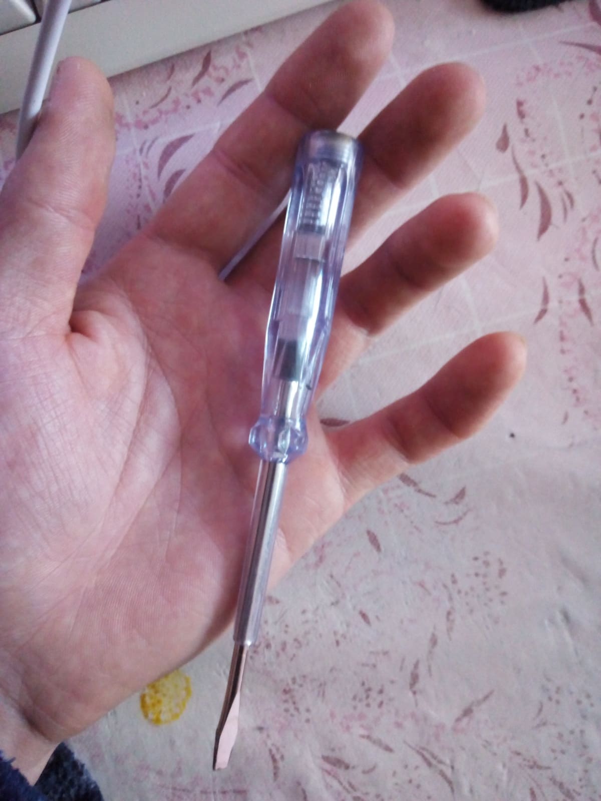Еще можно работать бесконтактным методом узнавая есть ли напряжения просто держать за шлиц отвертки рукой а стороной пяточка поднося к проводнику.