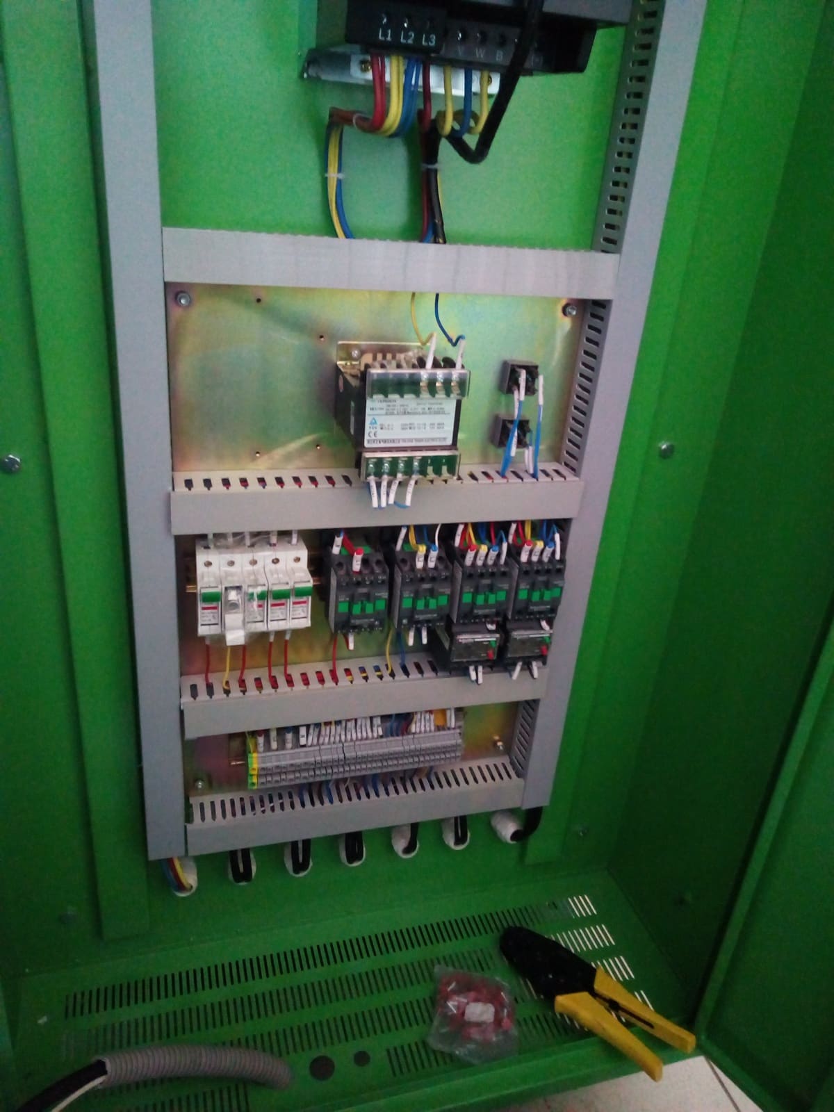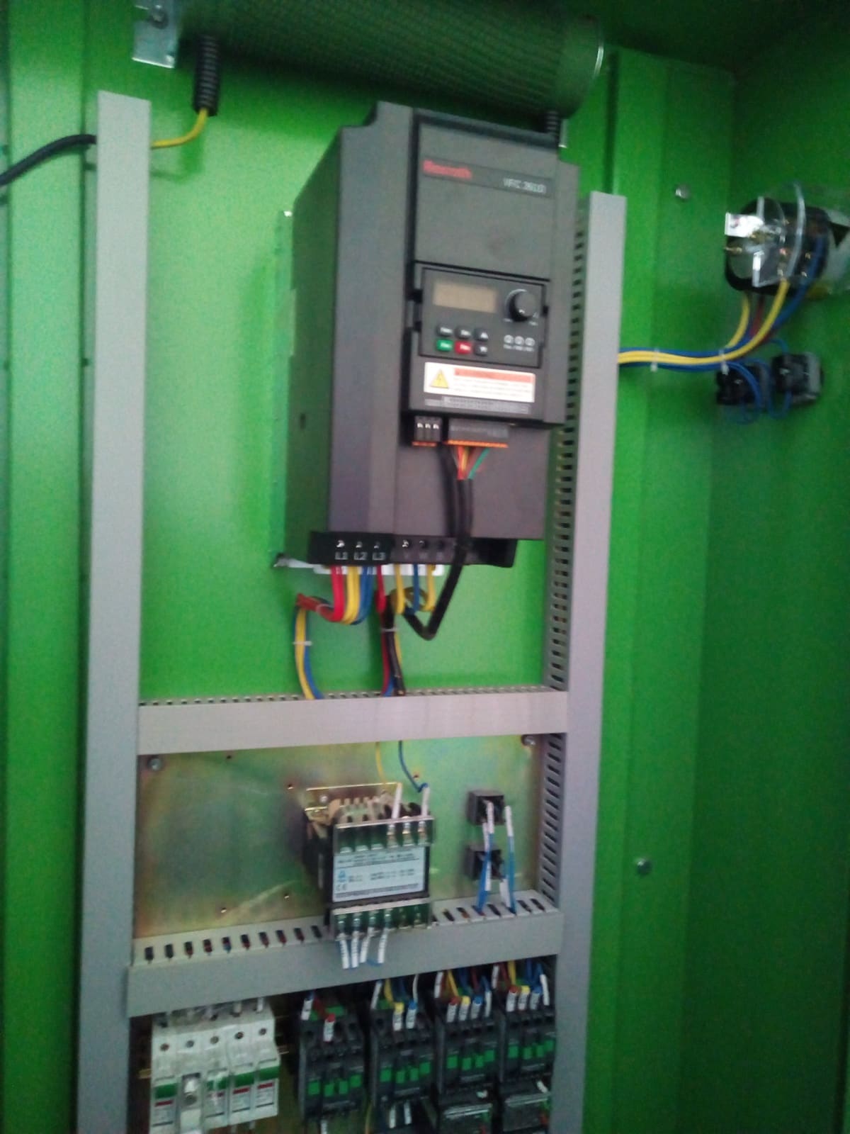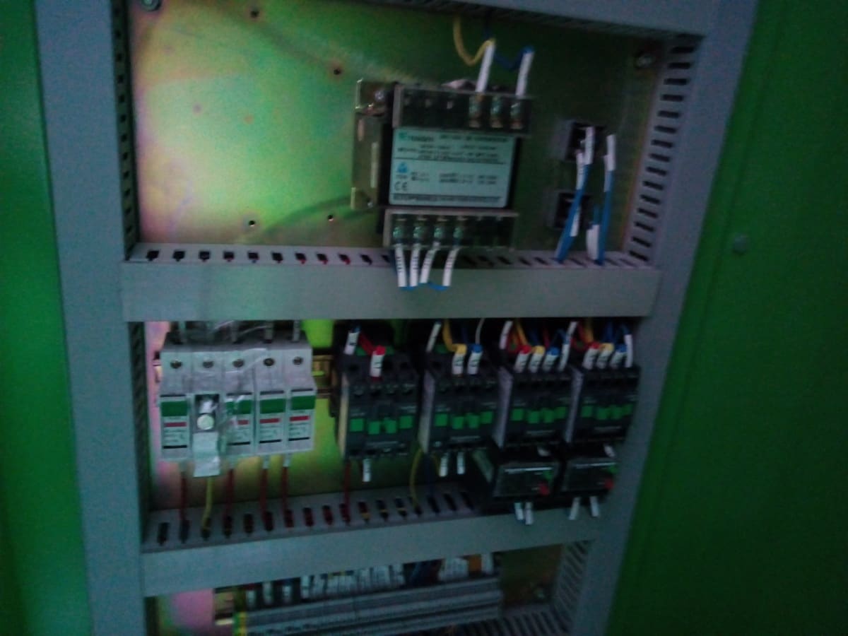 Так как данные металлокорпуса лишены лицевой панели было принято решение изготовить в ручную защитную лицевую панель из негорючего ПВХ листа установив её на предварительно установленные болтовые шпильки.