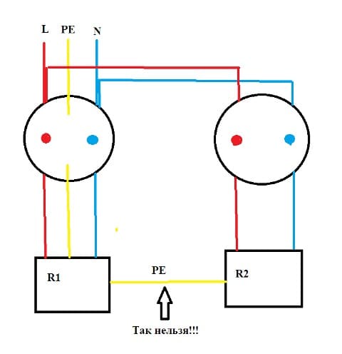 Бред ... какой то.Rumato писал(а):Источник цитаты При последовательном соединении РЕ-проводника, может возникнуть опасная ситуация, когда нагрузка R1 будет выключена из сети, а нагрузка R2 останется, подключена без защитного ноля, но с напряжением.