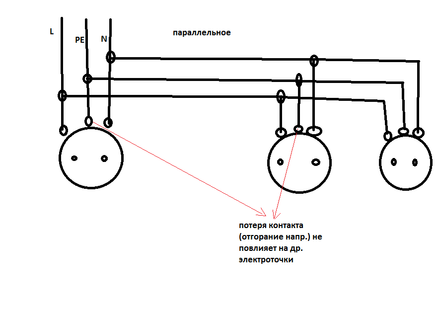 Мой ответ на http://forum-electrikov.ru/viewtopic.php?p=53050#p53050Rumato писал(а):Источник цитаты... Параллельное соединение, это когда каждая нагрузка подключена независимо от другой.