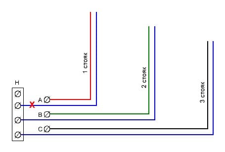 Где то хреновый контакт, стоит проверить подключение к стояку. В крайнем правом автомате изоляция провода не зажата? Очень похоже. Ну и перемычки посмотрите внимательней.