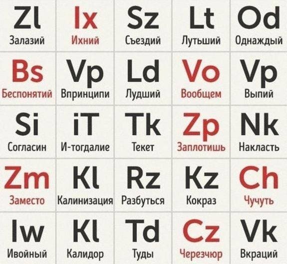Современная "таблица Менделеева", которая вместо химических элементов вобрала в себя самые популярные ошибки русского языка (вложение).