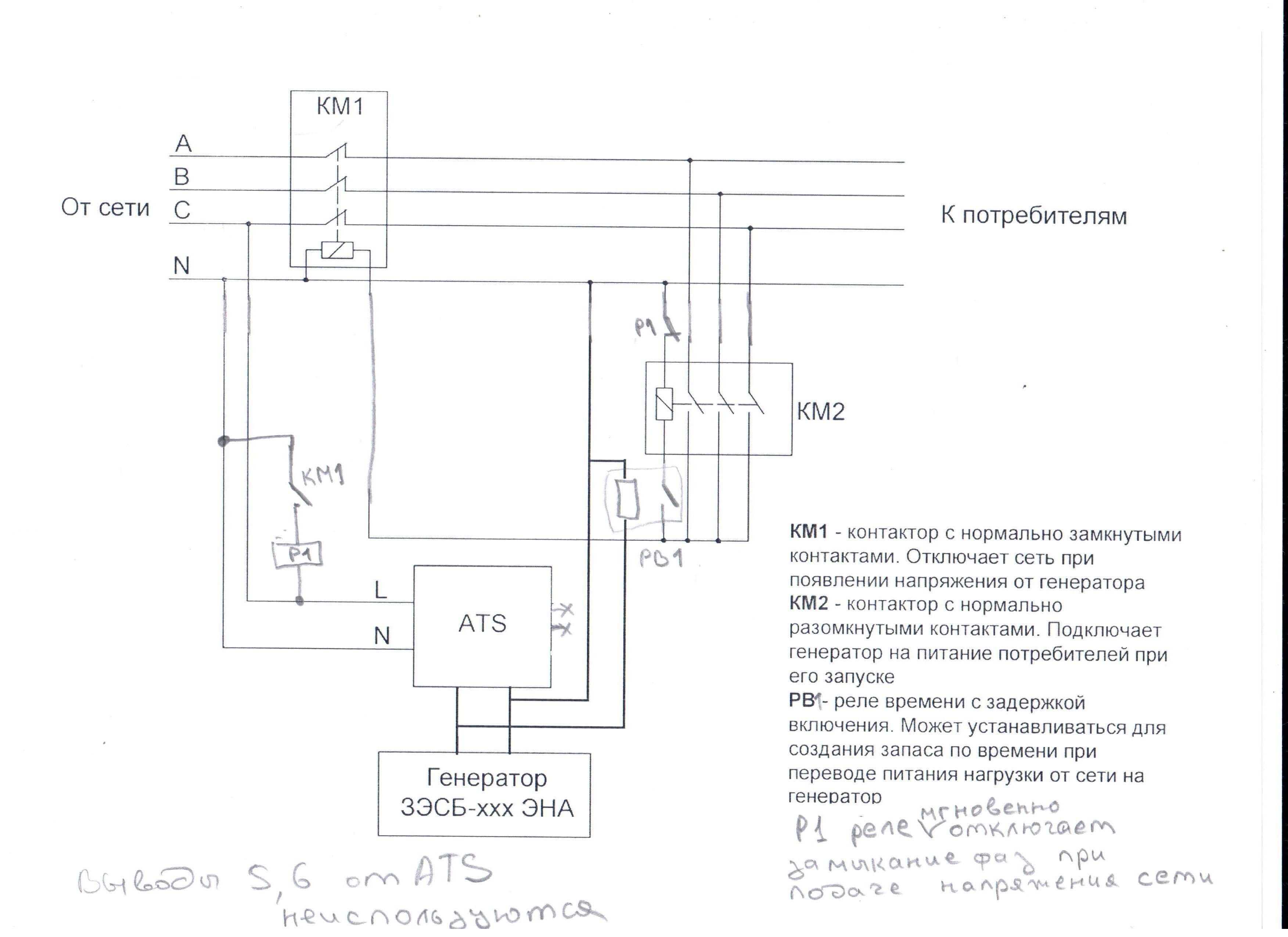 quick13 писал(а):Источник цитаты К сожалению не будет так работать. Что бы генератор не запускался на контактах 1и2 должно быть напряжение, которое через 2НЗ контактор есть и на 5и6. Отсюда сразу КЗ.