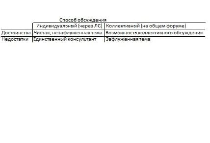 9.На форуме есть 2 принципиально разных способа обсуждения проблем: индивидуальный или коллективный, у каждого свои достоинства и недостатки.