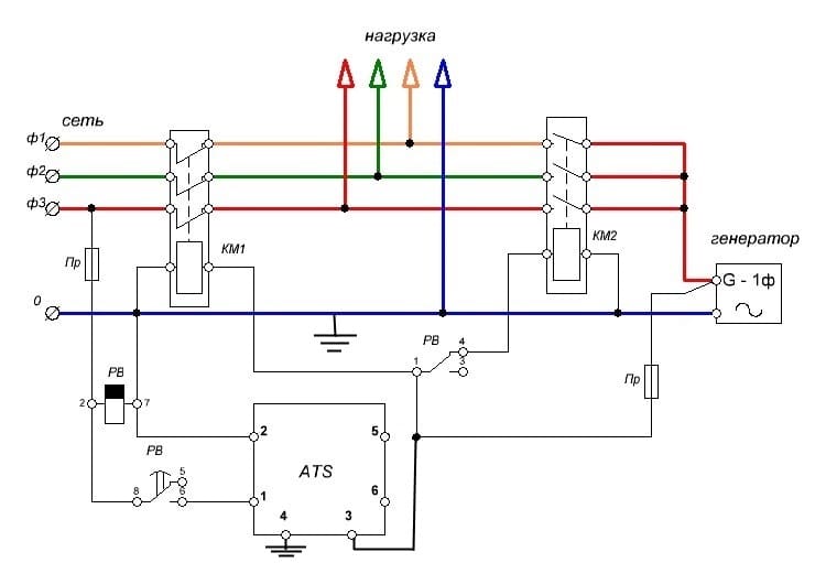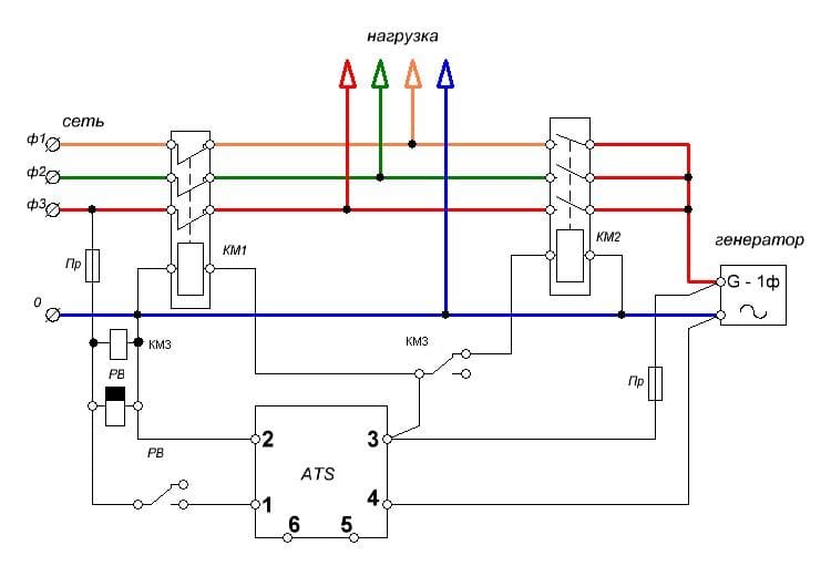 Или просто от генератора берем только фазу к блоку ATS, 5й контакт.