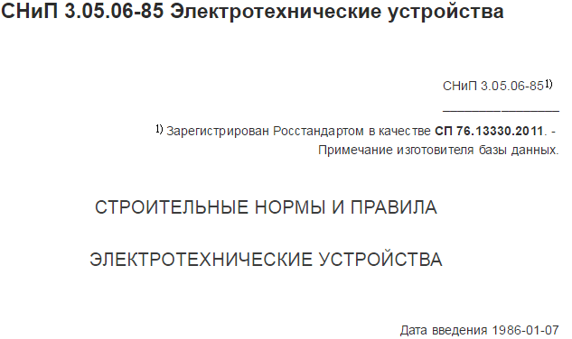 elalex писал(а):Источник цитаты пришлось просмотреть СНиП 3.05.06-85 Электротехнические устройства, Зарегистрирован Росстандартом в качестве СП 76.13330.2011: