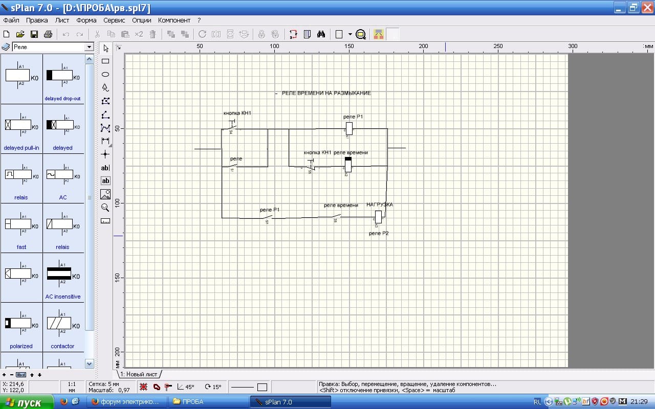 Здравствуйте, помогите пожалуйста, есть реле времени, кнопка, нагрузка.